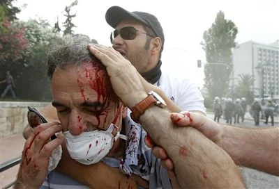 6. Εφαρμόζονται «θεραπείες» σοκ προκειμένου να εξαπατηθεί ο ελληνικός λαός και αποπροσανατολισμένος να μην μπορεί να αντιδράσει στα μέτρα εξαθλίωσης και υποδούλωσης που του επιβάλλονται. Εξεγειρόμαστε ενάντια στα παρασιτικά κέντρα πληροφόρησης και στην επίσημη κυβερνητική και διεθνή προπαγάνδα. Επαγρυπνούμε για την υπεράσπιση των δημοσίων αγαθών.